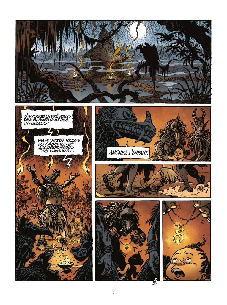 Tannicia a huit ans, un caractère bien trempé et un destin hors du commun. Après une dispute avec son grand frère, alors qu’elle part en ronchonnant chercher de l’eau à la rivière, elle est capturée par un sorcier pour servir de victime sacrificielle lors d’une cérémonie vaudou. Bon, déjà, j’ai décroché à partir de ce moment-là. Encore une histoire où le vodou est présenté comme quelque chose de magique, de dangereux, de sauvage et de mal. Ugh. Les méchants sont vodouisants, les gentils ne le sont pas. Bonjour les stéréotypes! Mais bon, j’ai laissé sa chance au coureur et j’ai continué ma lecture en espérant que les auteurs se reprennent.