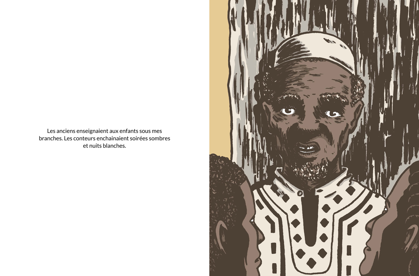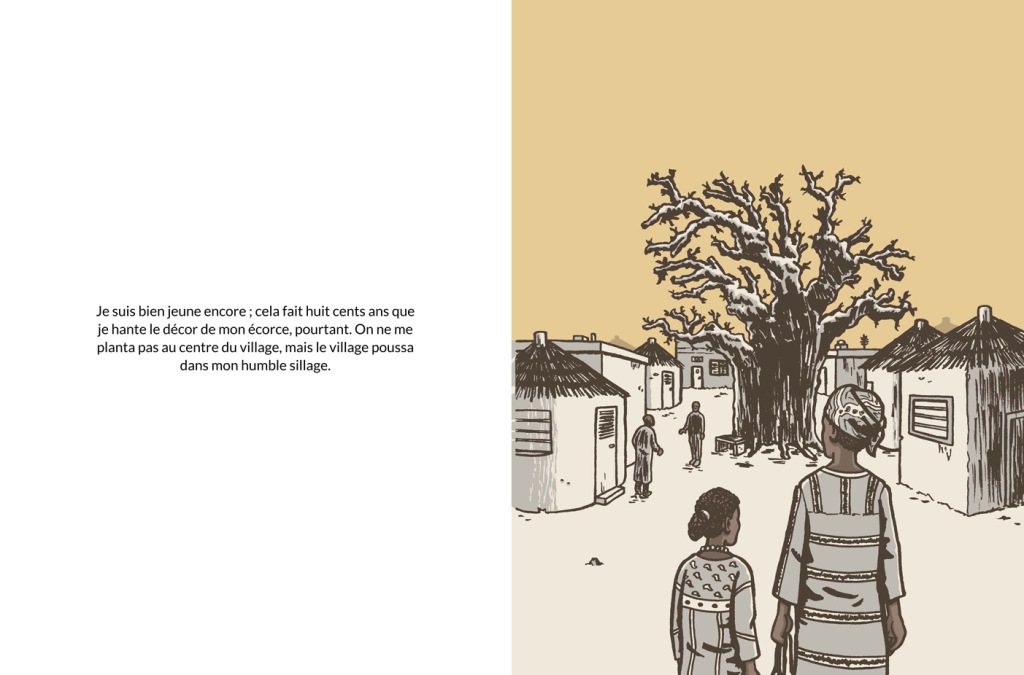 Planté il a plus de huit cents ans, le vieux baobab raconte son histoire. Tout un village s’est bâti autour de lui et il est devenu l’arbre à palabres, au pied duquel les femmes et les hommes se retrouvent, rient, discutent et prennent les décisions importantes.