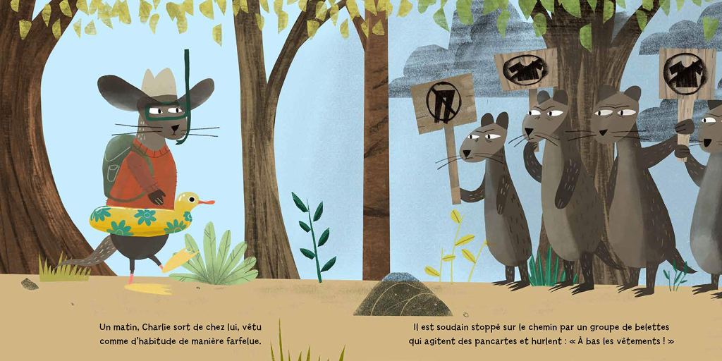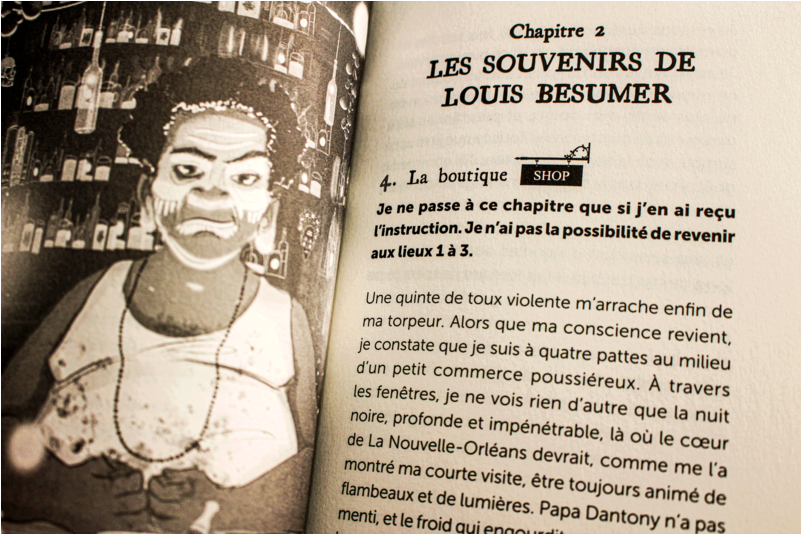 Attention! même si les illustrations du livre semblent un peu lisses et enfantines, il s’agit réellement d’un livre pour un lectorat assez mature. Dans La malédiction du Baron Samedi, on est sur les traces d’un tueur en série, tout ce qu’il y a de plus gore. Il y a plusieurs scènes de meurtres et même si dans l’illustrations, on ne voit qu’une chambre avec un peu de sang sur les draps, le texte nous détaille bien les corps démembrés et la violence du massacre qui s’est joué dans la pièce. J’ai trouvé cette dichotomie entre les illustrations et le texte un peu décevante, surtout si on veut lire ce livre pour frisonner un peu. Je sais pas, j’ai pas nécessairement envie de me dire « Oh, c’est mignon » en lisant un survival horror.