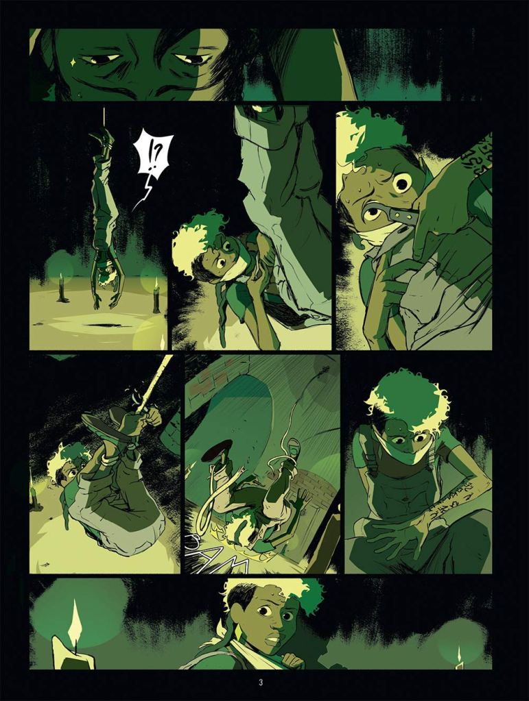 Une histoire librement inspirée de L’Appel de Cthuluh, le chef-d’œuvre de H. P. Lovecraft, cette bande dessinée a tout pour plaire. Avec un design de personnages réaliste et « cartoony » à la fois, et des environnements détaillés, chaque planche offre un équilibre certain. Et pouvons-nous parler de Attonia Wilcox en particulier? Cette fille est tellement badass! Super design pour ses cheveux (vous savez comme c’est important pour moi que les personnages noirs aient des coiffures qui correspondent à leur identité): Un genre de mohawk vert fluo, rasé sur les côté, avec un long lock à la nuque. À 16 ans, j’aurais voulu avoir la même coupe! 😀