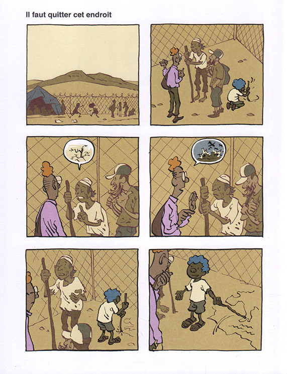 Parfois, les mots sont superflus car les images parlent d’elles-mêmes. Dans En vie, on suit le parcours de cinq personnages qui ont tout quitté pour entreprendre un long voyage vers des conditions de vie meilleures, dans un pays qu’ils ne connaissent pas. Chaque page constitue une planche titrée qui résume ce qui se passe dans les cases. Le récit est porteur d’espoir puisqu’à la fin, les réfugiés parviennent à s’installer en France.