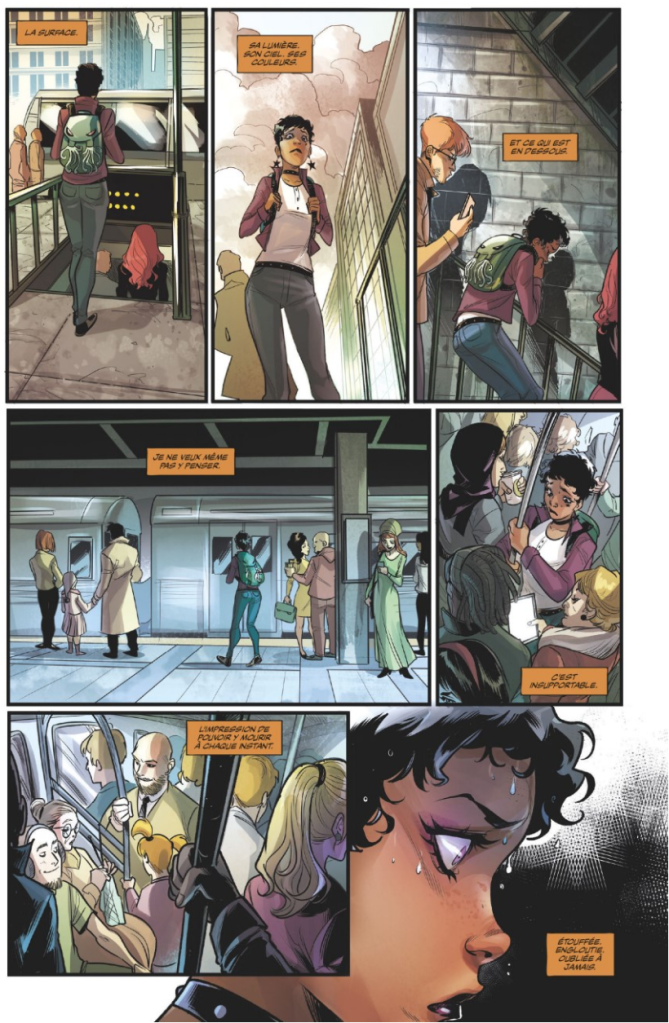 J’ai aimé la traduction canadienne plutôt qu’européenne: on parle d’école secondaire plutôt que de lycée et on nous épargne l’argot parisien. J’ai trouvé que les illustrations manquaient de sensibilité artistique et de relief. Le point fort de ce livre est sans l’ombre d’un doute le traitement du sujet. Pour les illustrations, rien de mémorable. À découvrir tout de même! À noter que les tomes 2 et 3 sont déjà disponibles en librairie.